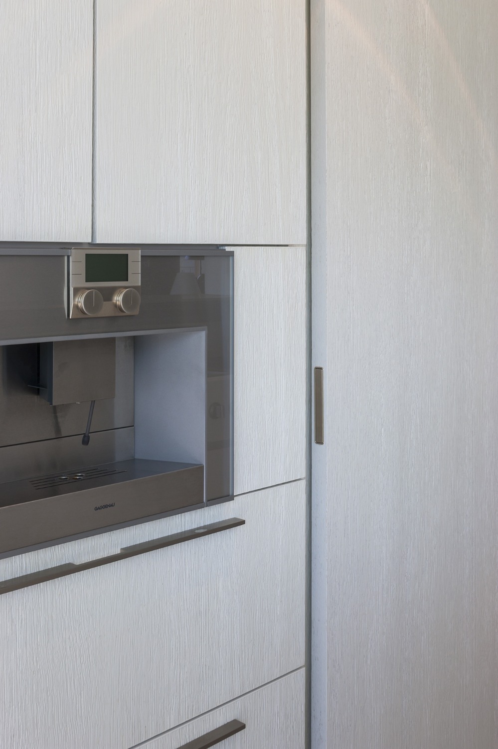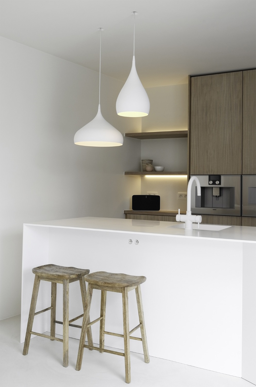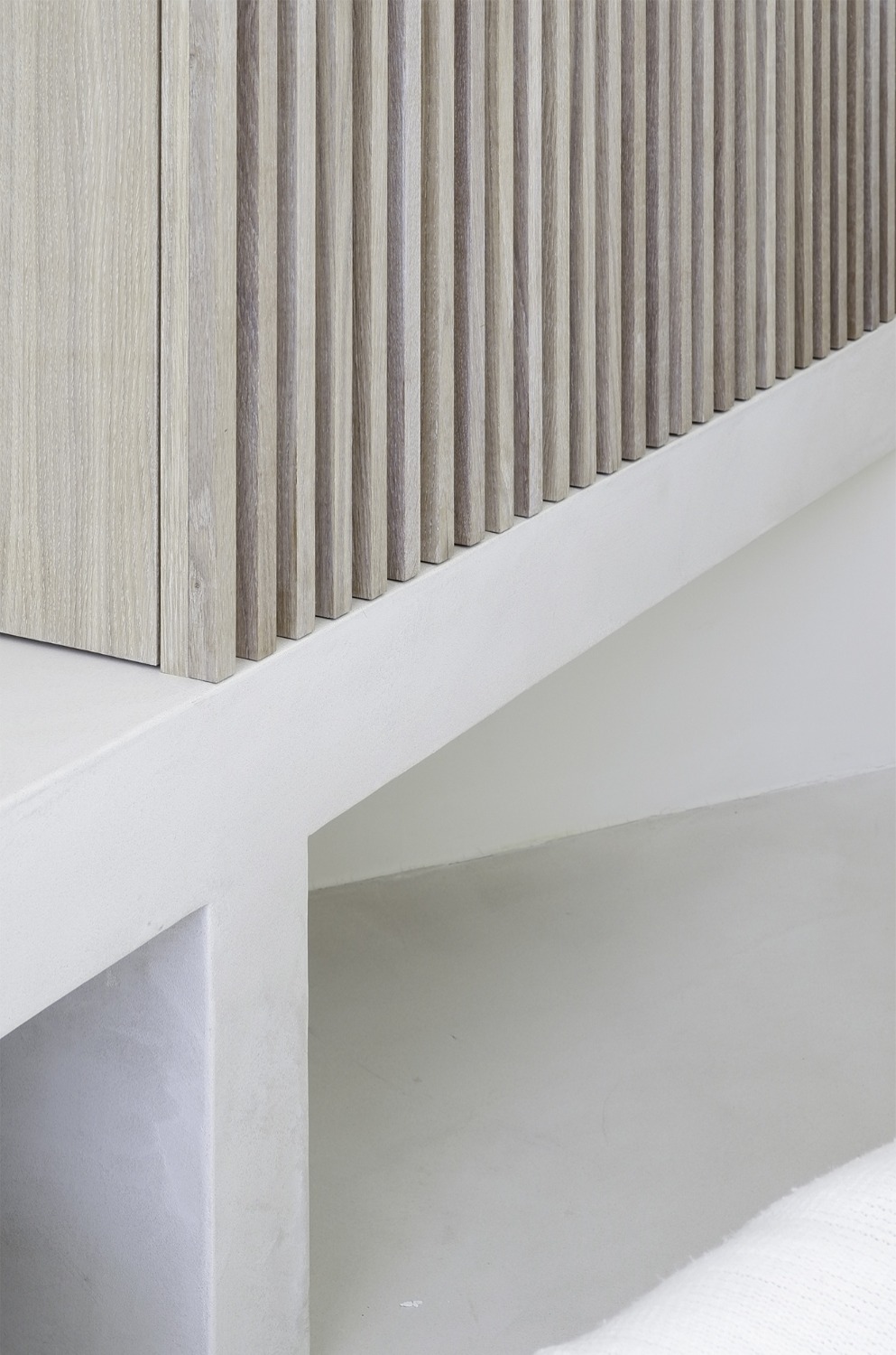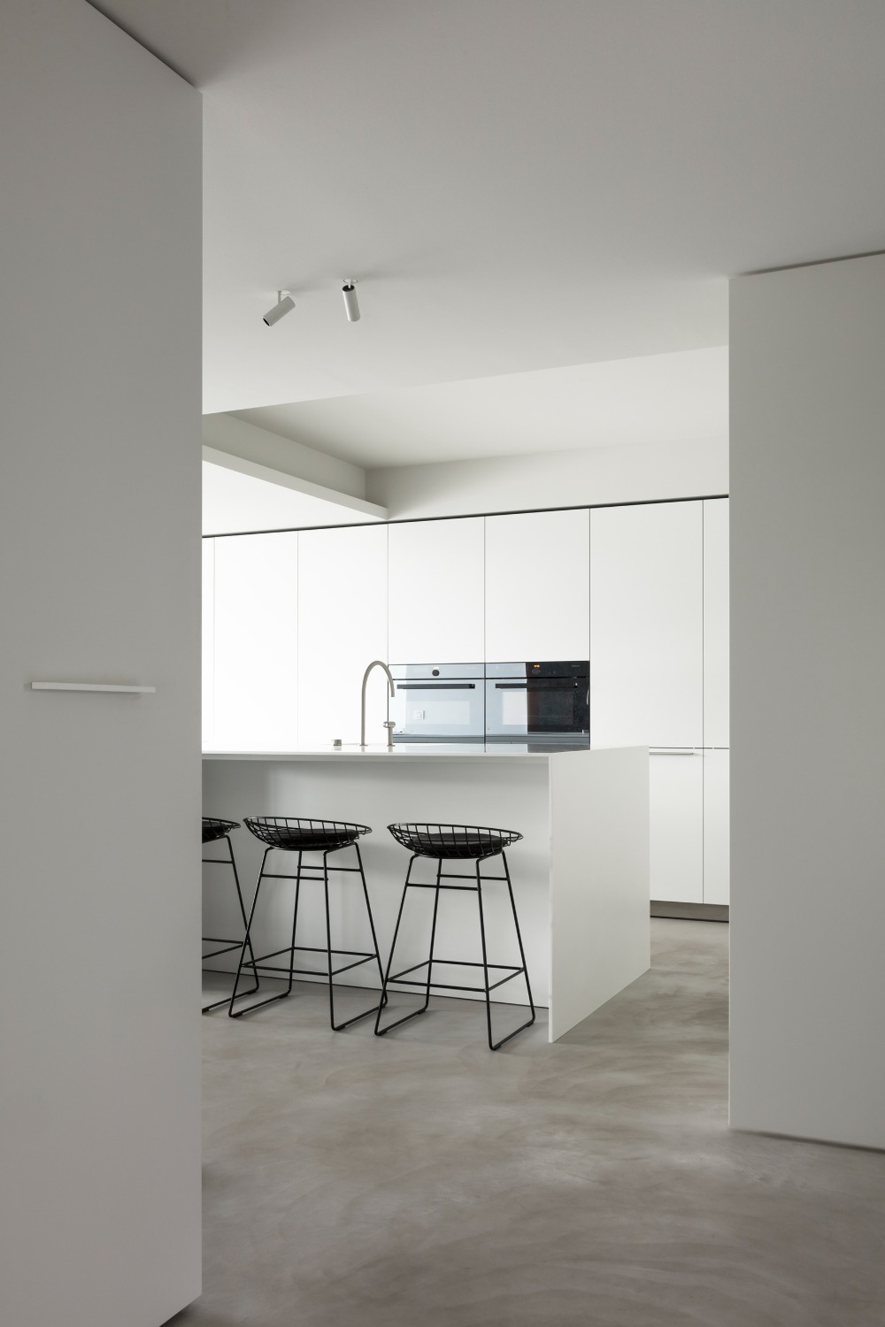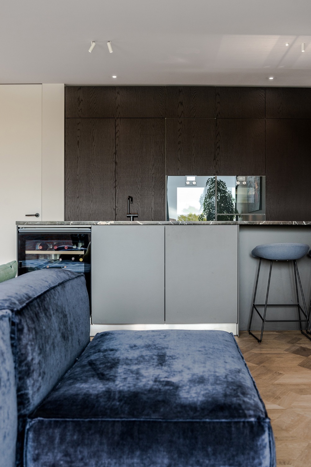De indeling van dit nieuwbouwappartement werd volledig herbekeken. Alle overbodige circulatieruimte werd verwijderd en ingelijfd als extra leefruimte. Bergingen en technische ruimtes werden tot het absolute minimum herleid. Op deze wijze ontstond een ruime leefruimte met open keuken waar maximaal kan worden genoten van het uitzicht op de Leie en Bijlokesite. Aan de straatzijde een master slaapkamer met badkamer en een bureauruimte / logeerkamer. Warme, eigenzinnige materialen geven het appartement een zeer persoonlijke uitstraling.