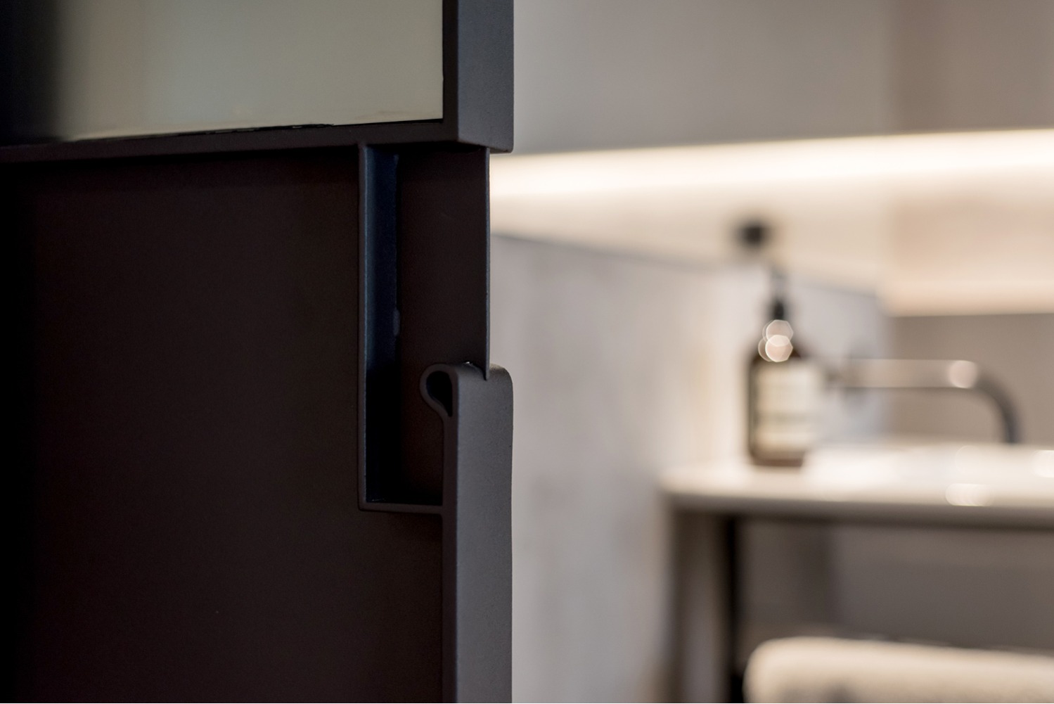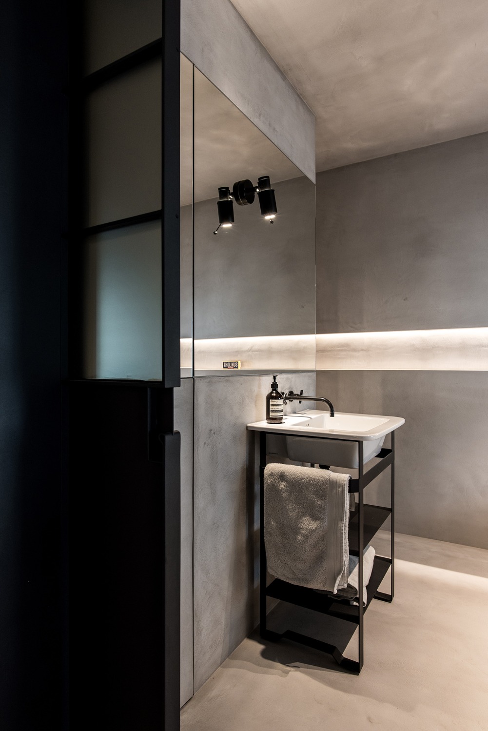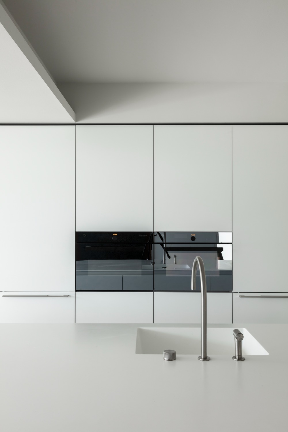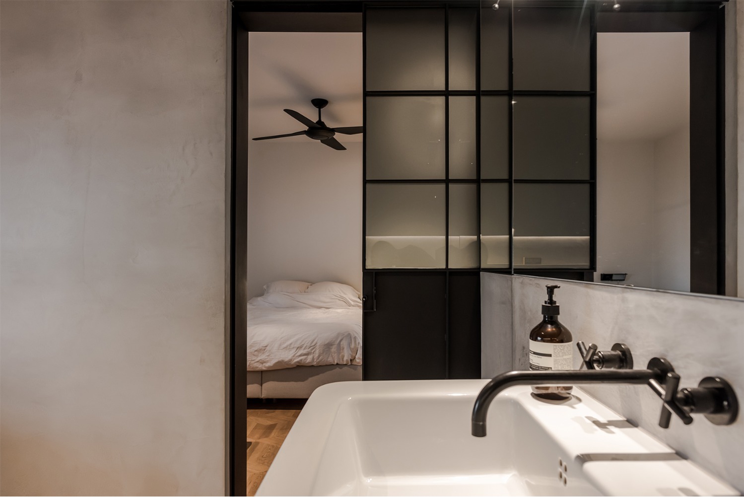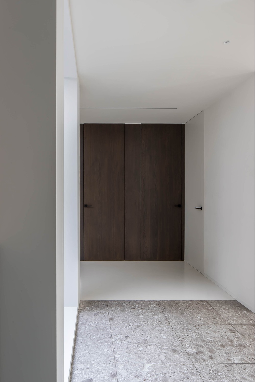 De indeling van dit nieuwbouwappartement werd volledig herbekeken. Alle overbodige circulatieruimte werd verwijderd en ingelijfd als extra leefruimte. Bergingen en technische ruimtes werden tot het absolute minimum herleid. Op deze wijze ontstond een ruime leefruimte met open keuken waar maximaal kan worden genoten van het uitzicht op de Leie en Bijlokesite. Aan de straatzijde een master slaapkamer met badkamer en een bureauruimte / logeerkamer. Warme, eigenzinnige materialen geven het appartement een zeer persoonlijke uitstraling.