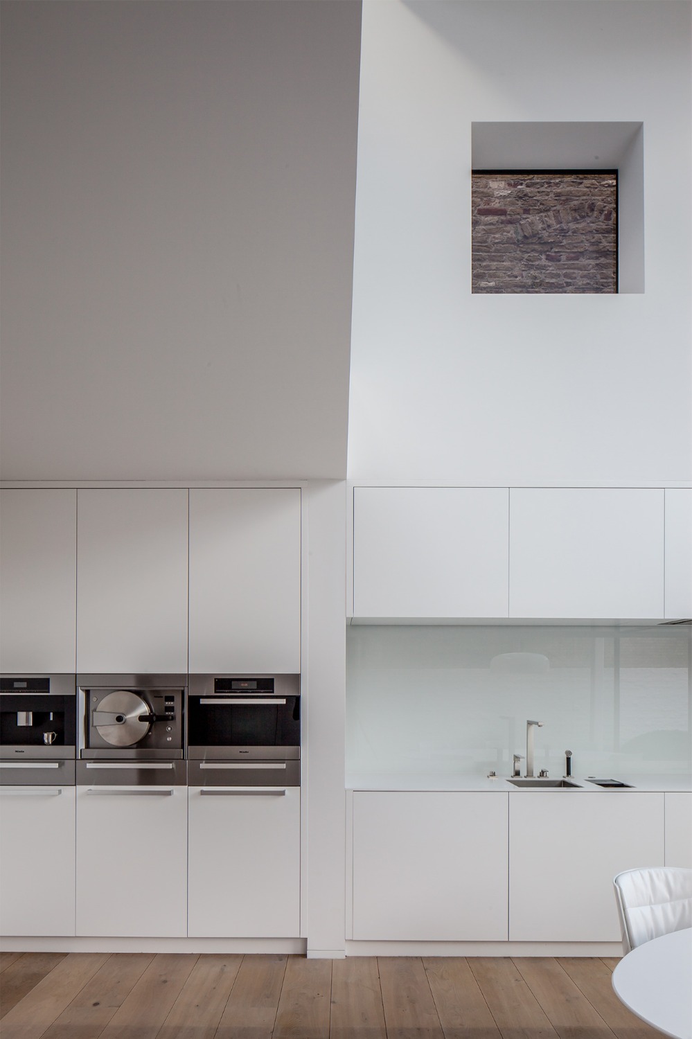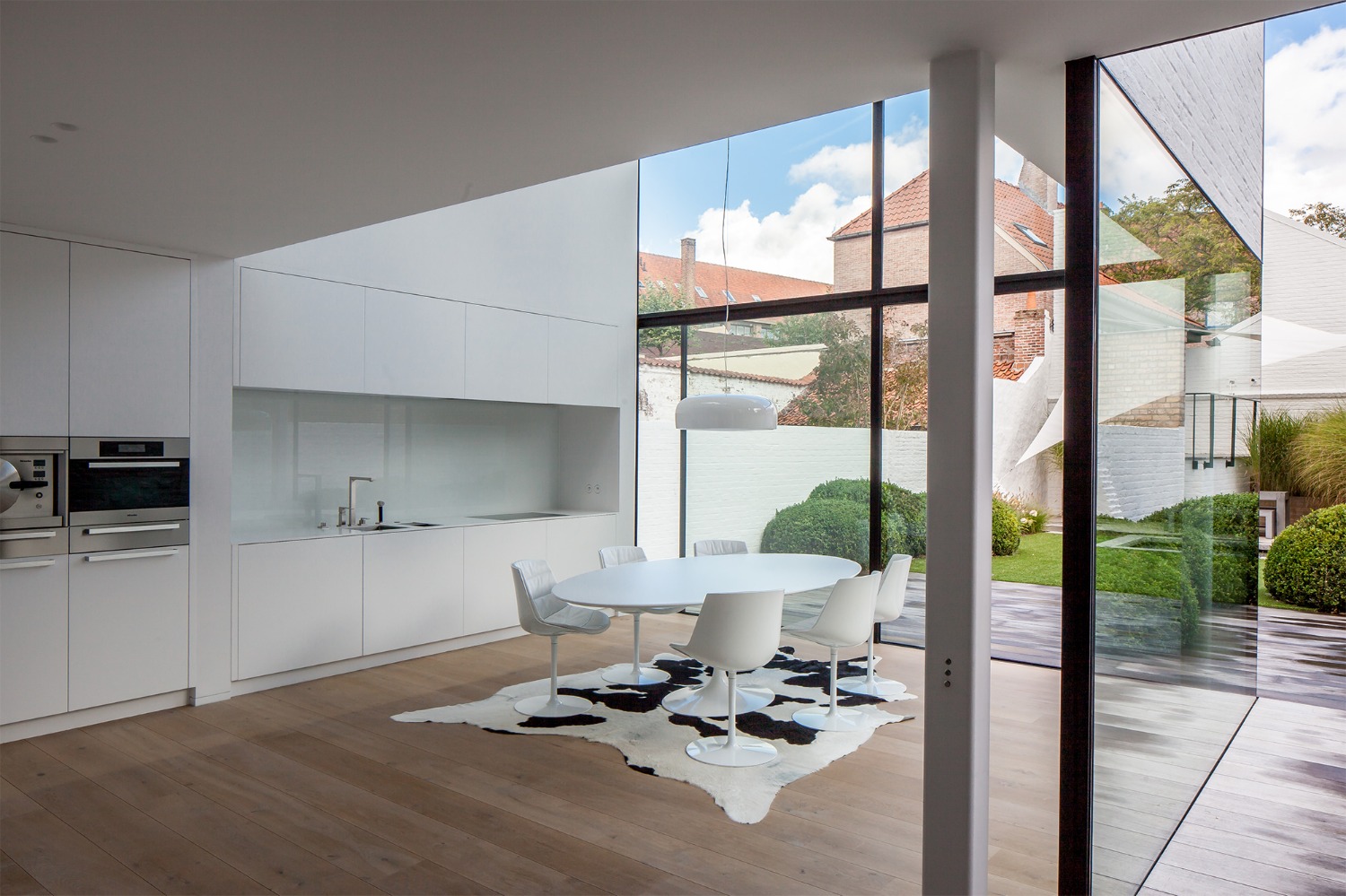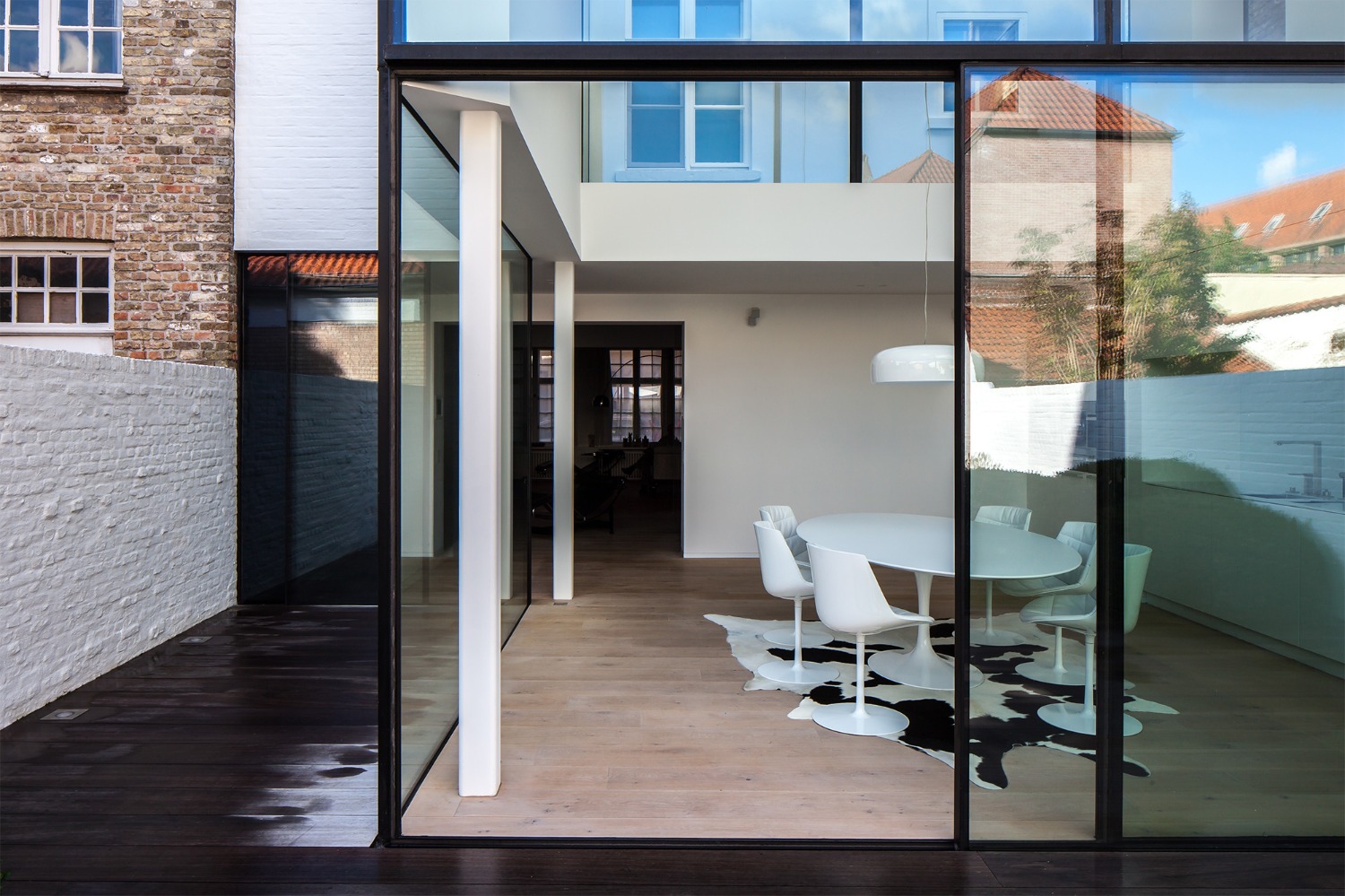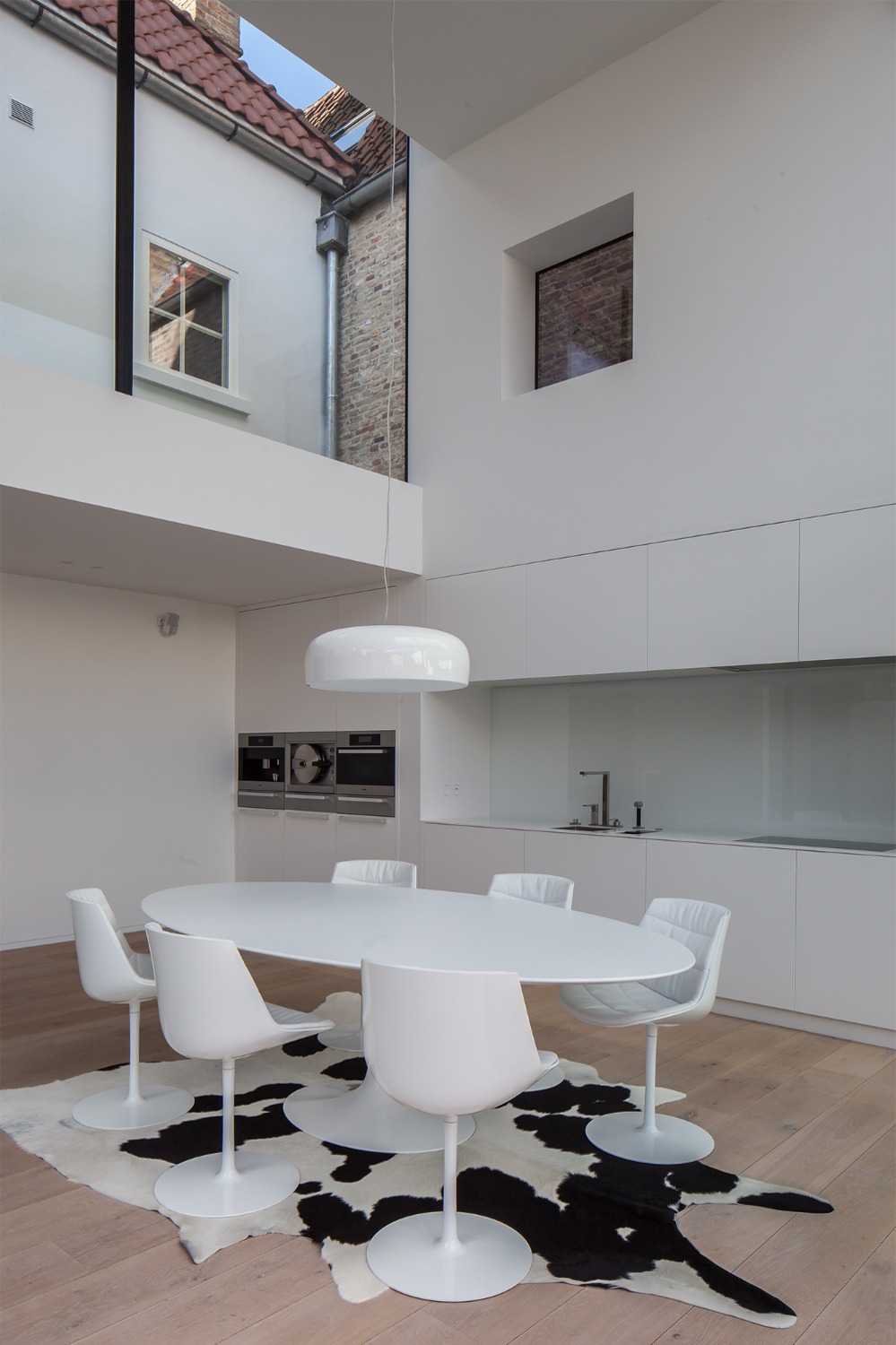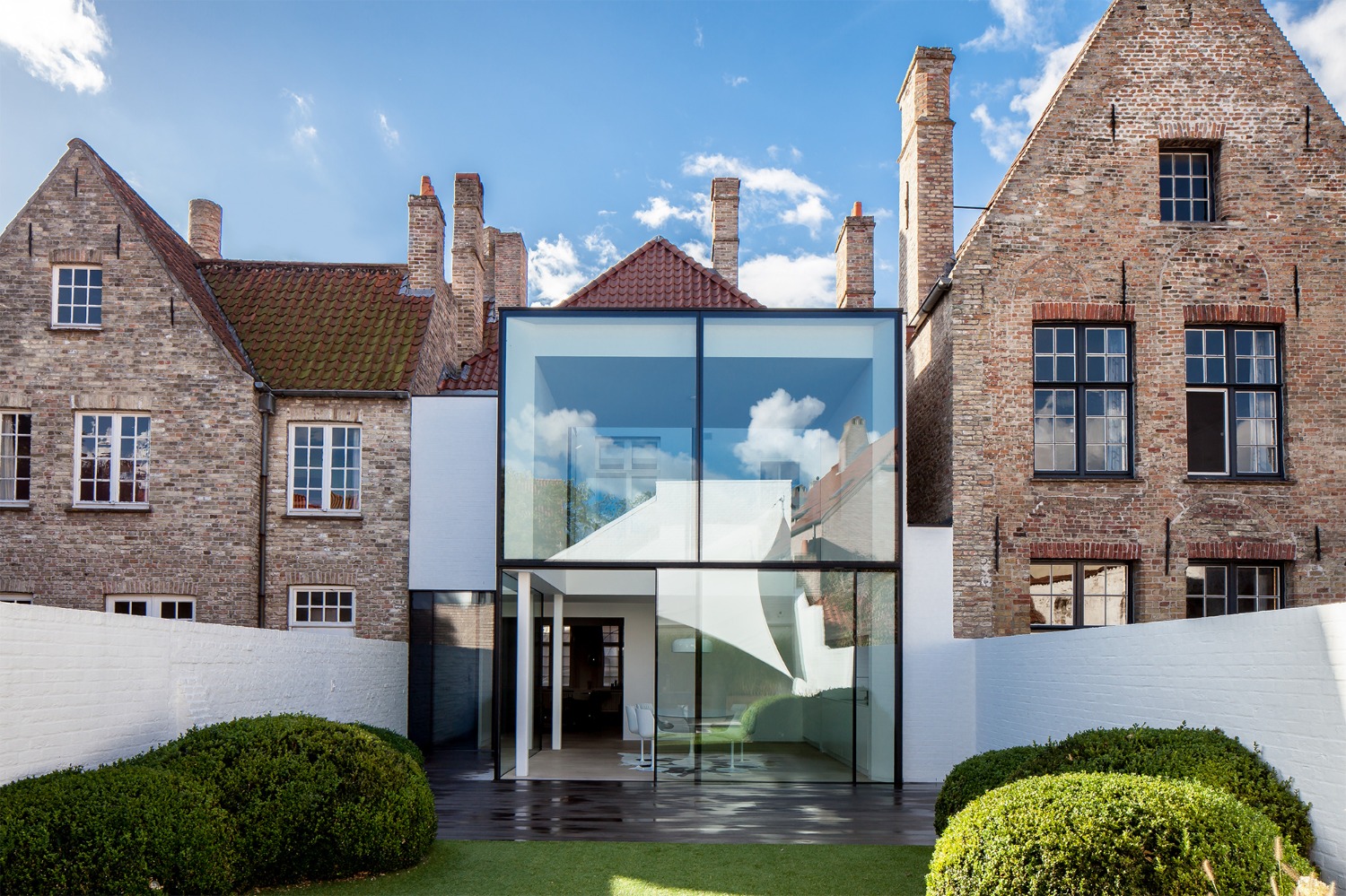 Deze uitbreiding bevindt zich achteraan een historische huizenrij in het centrum van Brugge. De opdrachtgever wenste een ruimere eetplaats en leefkeuken aansluitend op de tuin.