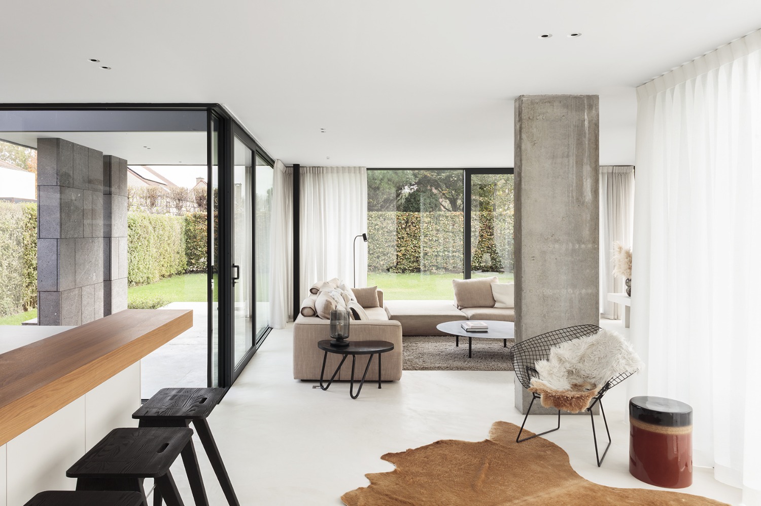 Na de realisatie van de oorspronkelijke woning werd ons gevraagd een uitbreiding te ontwerpen aansluitend op de bestaande terrassen en het zwembad. De uitbreiding vormt een verlengstuk van de bestaande welness ruimte in de woning en herbergt naast een extra zithoek met haard aan het zwembad een kitchenette en specifiek ontworpen floating ruimte. Een afzonderlijke ingang tot de uitbreiding maakt de floating ruimte ook bruikbaar voor professionele verhuur.